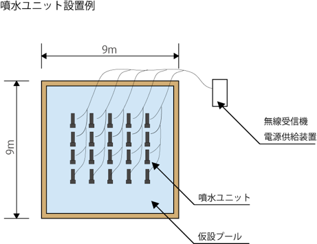 噴水ユニットに別オプションでバッテリーを内蔵し充電した電力による運用も可能です。